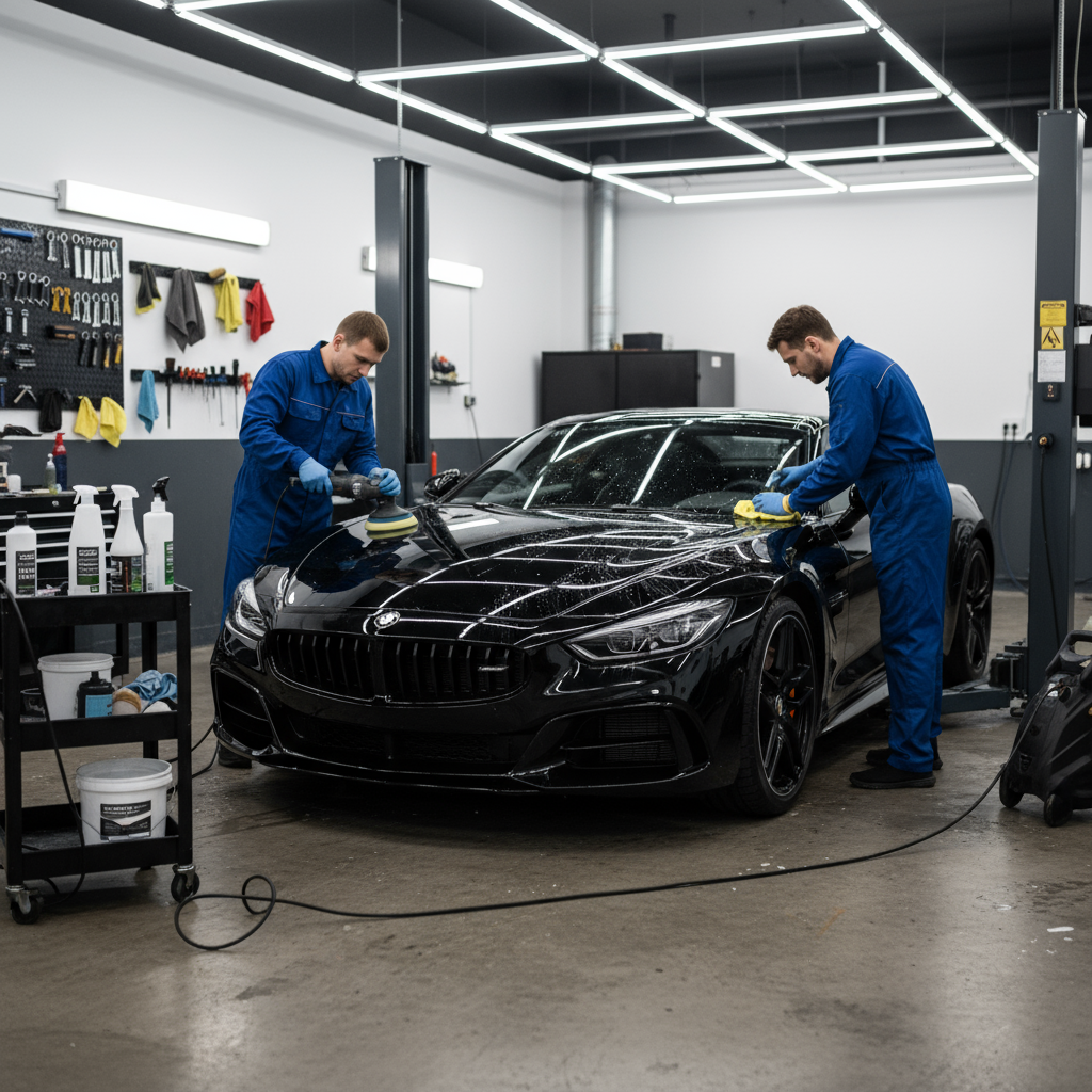Teljes körű külső-belső fényezés- és kárpitápolás, gépi és kézi polírozással.